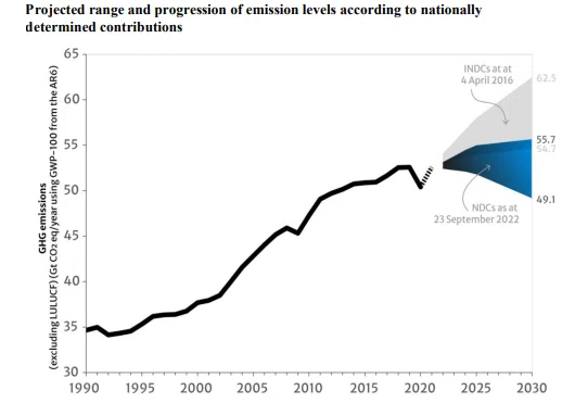 En este sentido, el Acuerdo de París ha establecido como meta el máximo de 1,5° C o 2° C de calentamiento global para mantener los efectos del cambio climático en un umbral asumible. Esto significa que, para 2030, las emisiones mundiales deben reducirse un 45% con respecto a los niveles de 2010. Indicaciones que, según un informe presentado en la última Cumbre del Clima (COP27), celebrada en noviembre de 2022 en Egipto, no son alcanzables incluso aunque se cumplieran completamente los planes de reducción de emisiones presentados por los países firmantes ya que, por la senda actual, estaríamos en camino hacia un incremento del 10,6% de las emisiones para 2030. Es por eso que la Organización de las Naciones Unidas (ONU) concluye que estos ‘esfuerzos’ siguen siendo insuficientes.