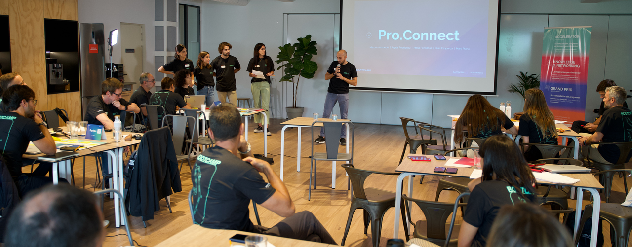 - Acelerator: es el corazón de Garage 360, en el que varios equipos (integrados por miembros de la plantilla de distintas áreas) se inscriben y ponen en común sus conocimientos para proponer posibles soluciones a los retos corporativos. Posteriormente, realizan una presentación final (pitch) ante el Comité Ejecutivo. De entre todas las ideas presentadas por los equipos, se elige un equipo ganador en base a los criterios de escalabilidad del proyecto, implementación, grado de innovación, carácter multidisciplinar de los equipos y viabilidad a nivel de rentabilidad.